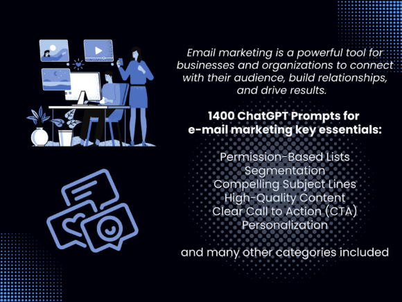 Our “1400+ ChatGPT Prompts for Email Marketing Bundle” isn’t just a collection; it’s an invitation to transform your email marketing efforts with AI-powered creativity. It embodies the power of technology to enhance your message and the potential to connect with your audience on a deeper level. Embrace the opportunity to create, and watch your email campaigns come alive with the spirit of innovation and engagement. Dive into this bundle and take your email marketing to new heights!