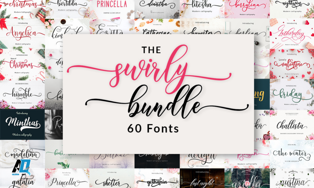 The Swirly Fonts Bundle is packed with 60 elegant script font families that will fulfill all your crafting needs!
